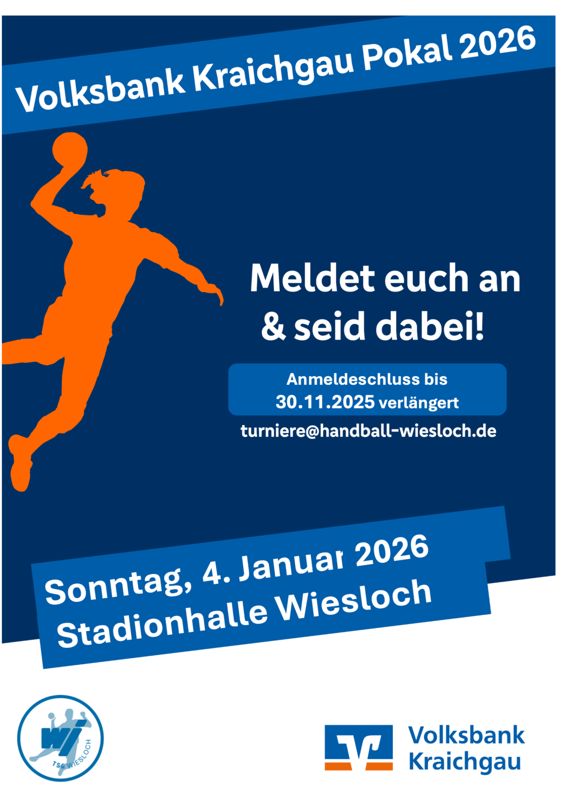 Bewerbungsfrist verlängert: Bewerbt euch noch bis Ende November für den Volksbank Kraichgau Pokal für weibliche C-Jugenden! Wir freuen uns sehr, bekanntzugeben, dass wir den Volksbank Kraichgau Pokal auch im Jahr 2026 wieder austragen!Zum ersten Mal richtet die TSG Wiesloch Handball das Turnier für weibliche C-Jugend-Mannschaften aus den umliegenden Verbänden aus – wir freuen uns auf spannende Spiele und tolle Teams! […]