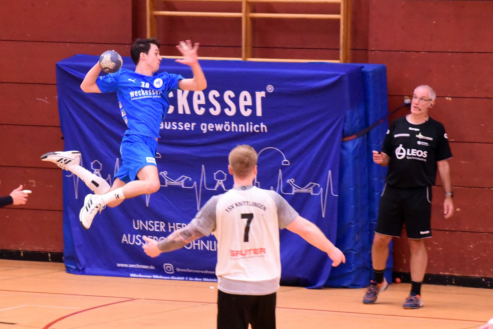 Die TSG sicherte sich am Wochenende vor heimischem Publikum einen hart erkämpften, aber verdienten Sieg gegen den TSV Knittlingen. Beide Teams boten den Zuschauern ein temporeiches und sehenswertes Handballspiel, das an Spannung und Intensität kaum zu überbieten war. Von Beginn an entwickelte sich ein ausgeglichenes Duell. Nach 15 Minuten führte die TSG mit 6:4, zeigte dabei gute Ansätze in der Offensive und eine kompakte Abwehrleistung. Der TSV Knittlingen blieb jedoch stets in Schlagdistanz, fand immer wieder Lücken in der Defensive, konnte den Rückstand zur Pause aber nicht mehr verkürzen. So ging Wiesloch mit einer 12:9-Führung in die Kabine. Auch in der zweiten Halbzeit blieb das Spiel spannend. Beide Mannschaften begegneten sich auf Augenhöhe, lieferten sich intensive Zweikämpfe und hielten das Tempo hoch. In dieser Phase übernahm Nick Schmitt in der Offensive Verantwortung, traf mehrfach sehenswert in den Winkel und setzte wichtige Akzente. Simon van de Locht warf sich in der Defensive in jeden Zweikampf, zeigte enorme Kämpfermentalität und brachte so die nötige Stabilität ins Spiel. Paul Stier blieb wie gewohnt treffsicher und verwandelte seine Chancen eiskalt. Im Tor erwischte David Böhler einen Sahnetag – mit starken Paraden und sicherem Stellungsspiel hielt er sein Team in entscheidenden Momenten im Spiel. In den letzten Minuten setzte sich die TSG schließlich mit Entschlossenheit und mannschaftlicher Geschlossenheit durch, eine Szene, die dabei im Kopf geblieben ist war der sehenswerte Tempogegenstoß von Julian Ebbecke. Beim Schlusspfiff stand ein verdienter 29:25-Heimsieg auf der Anzeigetafel – ein Erfolg, der auf Einsatz, Teamgeist und starker Defensive beruhte.