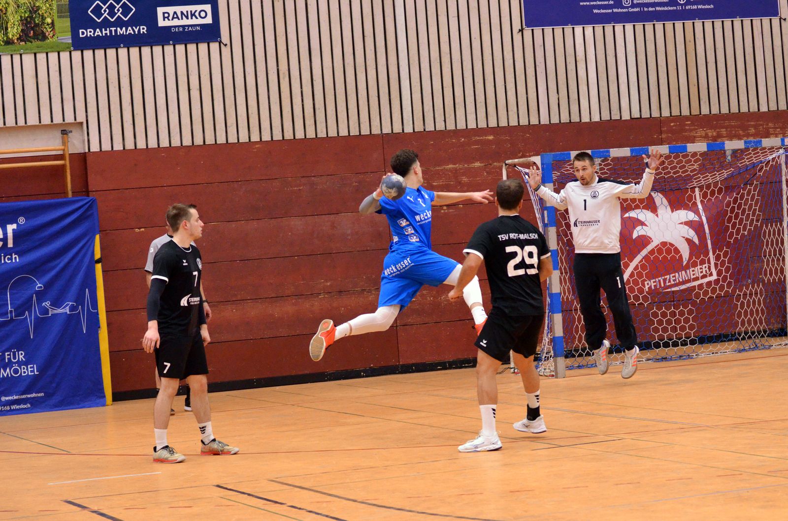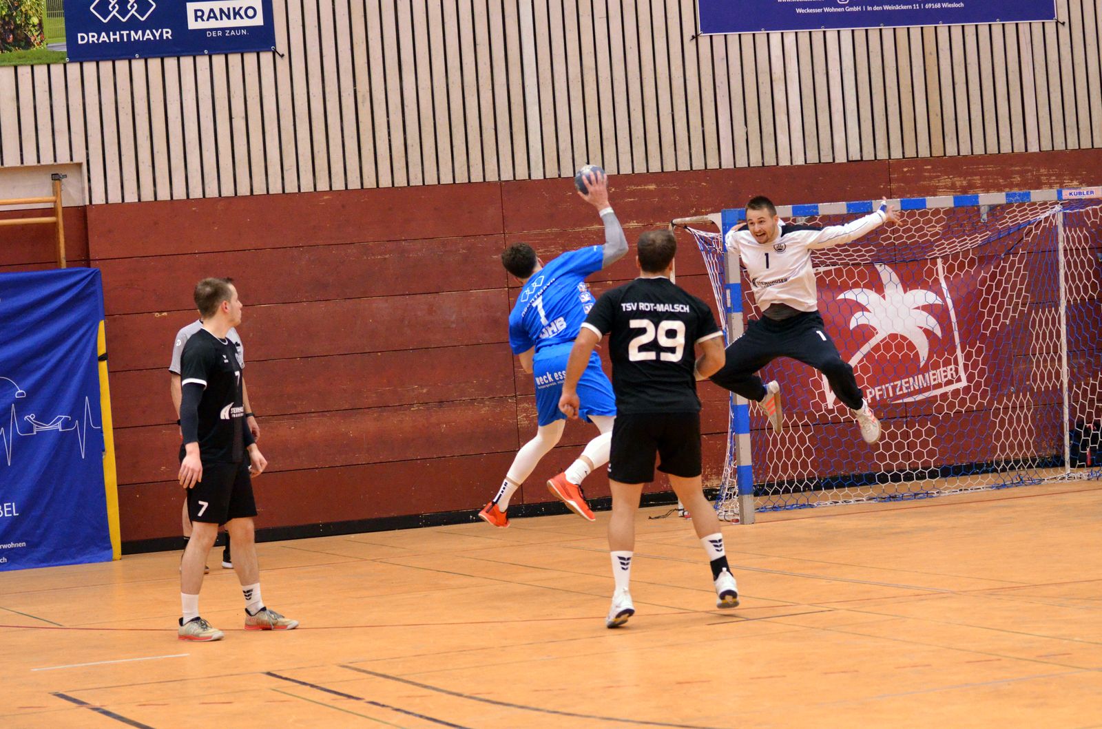 Die TSG Wiesloch feierte am Wochenende einen emotionalen Derbysieg gegen den TSV Rot-Malsch und setzte sich nach hartem Kampf mit 31:27 (15:16) durch. Das Spiel begann furios: Die TSG startete mit viel Energie und Spielfreude und konnte sich bereits nach 15 Minuten mit 7:3 absetzen. Besonders in der Anfangsphase zeigte sich das Zusammenspiel zwischen Torhüter und Abwehr außergewöhnlich solide – die Defensive stand kompakt, verschob konsequent und ließ den Gästen kaum Raum für klare Abschlüsse. Doch nach dieser starken Anfangsphase kam Rot-Malsch immer besser in Fahrt. Die Gäste nutzten einen kleinen Lauf kurz vor der Pause, um die Partie zu drehen, und gingen mit einer knappen 15:16-Führung in die Halbzeit. Torhüter Tim Nagel, der gegen seinen ehemaligen Verein zunächst eine starke Leistung zeigte, musste kurz vor der Halbzeitpause verletzungsbedingt ausgewechselt werden – ein herber Rückschlag für die TSG.